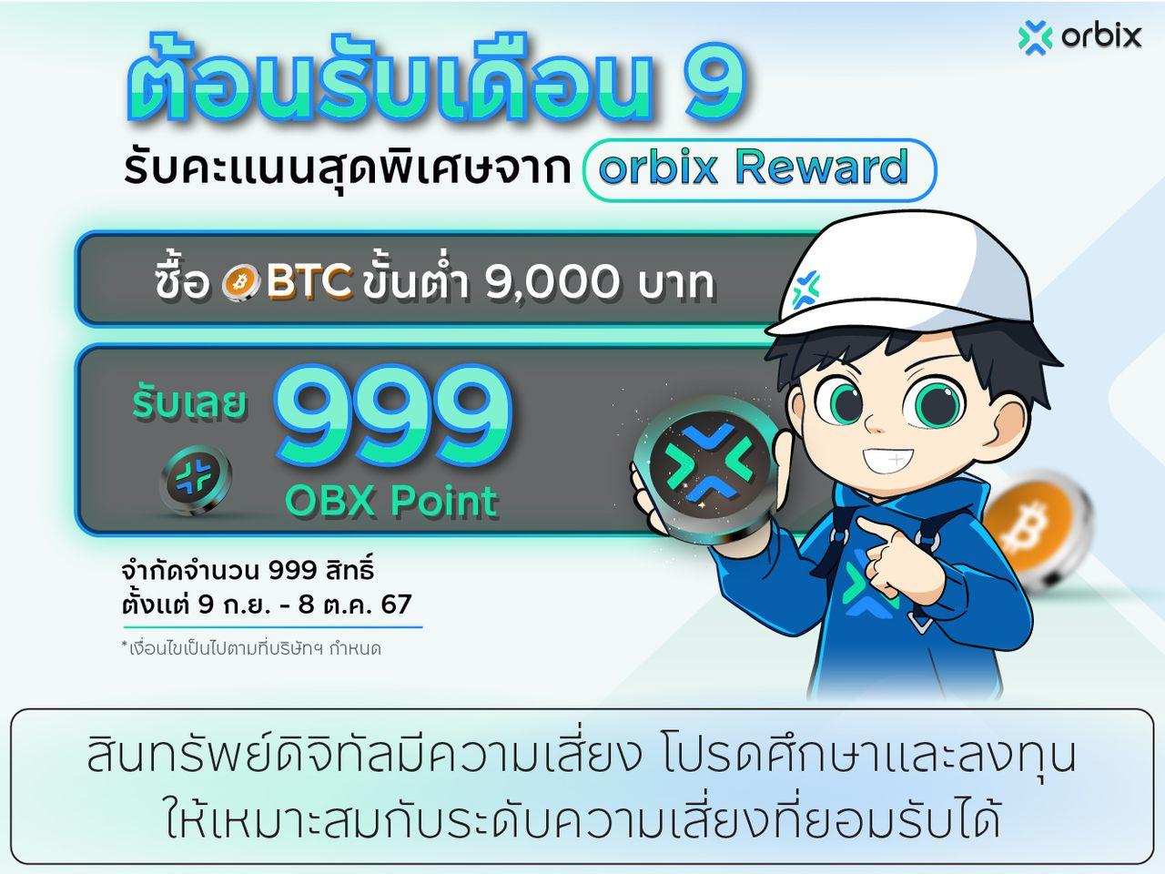 🛎️เพียงซื้อเหรียญ Bitcoin (BTC) สะสมรวมขั้นต่ำ 9,000 บาท จากนั้น กรอกโค้ด BTC9 บนเว็บไซต์หรือแอปพลิเคชัน orbix trade รับทันทีพอยต์จาก orbix Reward จำนวน 999 OBX