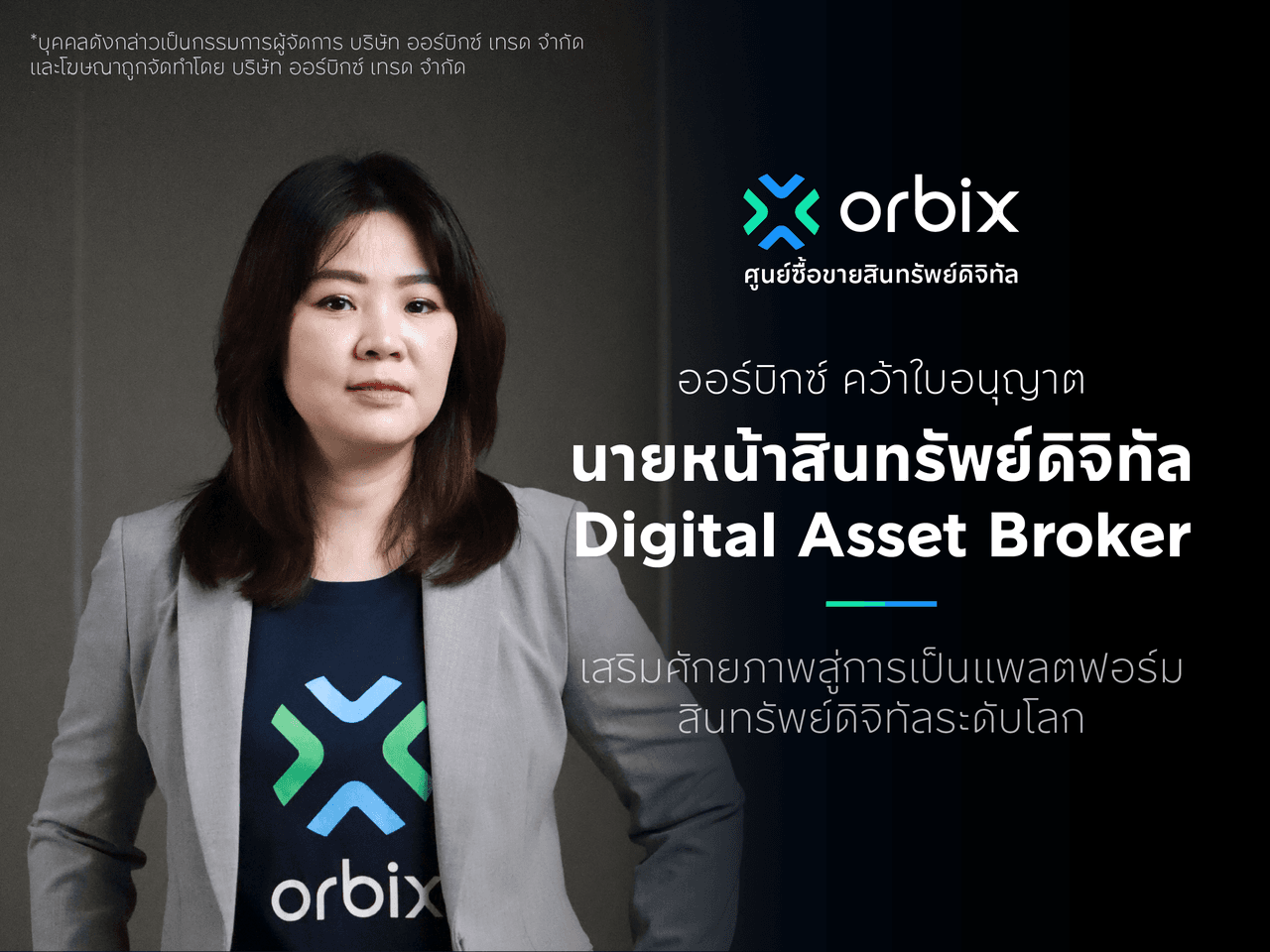 ออร์บิกซ์ เทรด (orbix) เดินหน้าตอกย้ำความเป็นผู้นำแพลตฟอร์มแลกเปลี่ยนสินทรัพย์ดิจิทัลของไทยด้วยการได้รับใบอนุญาตนายหน้าซื้อขายสินทรัพย์ดิจิทัล (Digital Asset Broker) จากรัฐมนตรีว่าการกระทรวงการคลังอย่างเป็นทางการ ส่งผลให้ ออร์บิกซ์ เป็นผู้ประกอบการในประเทศไทยที่ได้รับใบอนุญาตธุรกิจสินทรัพย์ดิจิทัลรวมทั้งสิ้น 2 ประเภท ได้แก่ ใบอนุญาตประกอบธุรกิจศูนย์ซื้อขายสินทรัพย์ดิจิทัล (Digital Asset Exchange) และใบอนุญาตประกอบธุรกิจนายหน้าซื้อขายสินทรัพย์ดิจิทัล (Digital Asset Broker) นับเป็นอีกก้าวสำคัญที่ช่วยเสริมศักยภาพของออร์บิกซ์สู่การเตรียมเชื่อมต่อกับศูนย์ซื้อขายระดับโลกได้โดยตรง พร้อมยกระดับมาตรฐานการดำเนินงานสู่ระดับสากลด้วยระบบความปลอดภัยตามมาตรฐาน ISO ควบคู่ไปกับการพัฒนาแพลตฟอร์มเพื่อตอบโจทย์นักลงทุนยุคใหม่มากยิ่งขึ้น พร้อมจัดแคมเปญส่งมอบสิทธิประโยชน์สุดคุ้มให้แก่ลูกค้าส่งท้ายปี ทั้งนี้ออร์บิกซ์อยู่ระหว่างขั้นตอนการเตรียมความพร้อมของระบบงานเพื่อขออนุญาตจากสำนักงานคณะกรรมการกำกับหลักทรัพย์และตลาดหลักทรัพย์ก่อนเริ่มประกอบธุรกิจนายหน้าซื้อขายสินทรัพย์ดิจิทัลอย่างเป็นทางการตามกฎหมายกำหนด