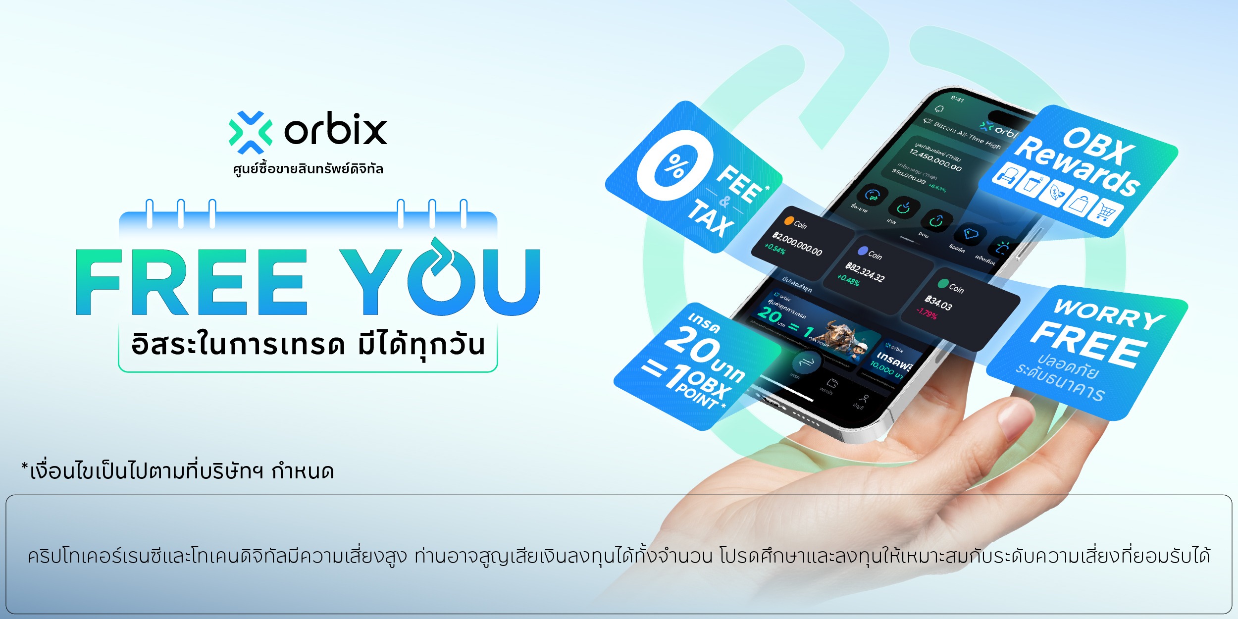บริษัท ออร์บิกซ์ เทรด จำกัด (orbix) ผู้นำแพลตฟอร์มศูนย์ซื้อขายสินทรัพย์ดิจิทัลของไทย ภายใต้ ออร์บิกซ์ กรุ๊ป ประกาศเดินเกมรุกในปี พ.ศ. 2569 เปิดตัวแคมเปญใหม่ “Free You อิสระในการเทรดมีได้ทุกวัน” มุ่งสร้างประสบการณ์การลงทุนที่ใช้งานง่าย ยืดหยุ่น และมีข้อมูลช่วยตัดสินใจอย่างมั่นใจ รองรับไลฟ์สไตล์นักลงทุนสินทรัพย์ดิจิทัลในระยะยาว พร้อมมอบสิทธิพิเศษแก่ลูกค้าใหม่และลูกค้าปัจจุบันอย่างต่อเนื่องตลอดทั้งปี ควบคู่มาตรการสนับสนุนด้านภาษี และการพัฒนาแพลตฟอร์มที่ให้ความสำคัญกับมาตรฐานความปลอดภัยและความน่าเชื่อถือในระดับสากล
