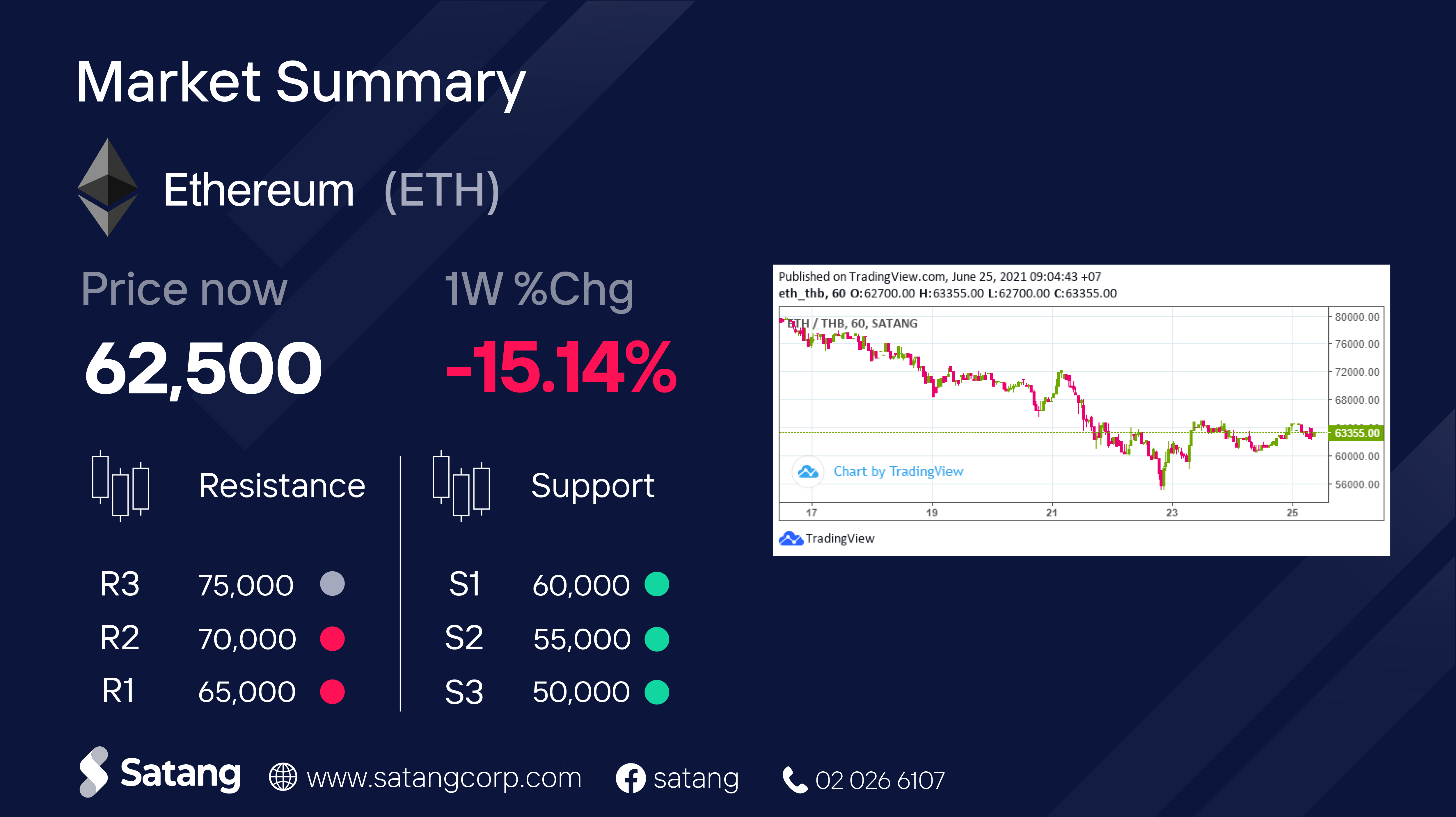 ราคาเกิดแรงเทขายอย่างหนักในช่วงต้นสัปดาห์ ส่งผลให้ราคาเกิดการปรับตัวลงมาที่โซนแนวรับใหญ่ ก่อนที่ในช่วงท้ายสัปดาห์จะเกิดแรงซื้อคืนกลับ และส่งผลให้ราคาเกิดการปรับตัวสูงขึ้นมาที่โซนแนวต้านในเทรนด์ขาลงอีกครั้ง โดยคาดการณ์ว่าในระยะสั้นราคาอาจเกิดการทรงตัว และเคลื่อนตัวตามกรอบโซนแนวรับแนวต้าน แต่ในระยะกลาง-ยาวให้เริ่มติดตามสัญญาณซื้อขายอย่างใกล้ชิด เรื่องราคาเกิดสัญญาณซื้อในภาพรวม แต่อย่างไรก็ตามยังคงแนะให้บริหารความเสี่ยงเป็นหลัก เพื่อลดความเสี่ยงจากความผันผวนของกระแสตลาด